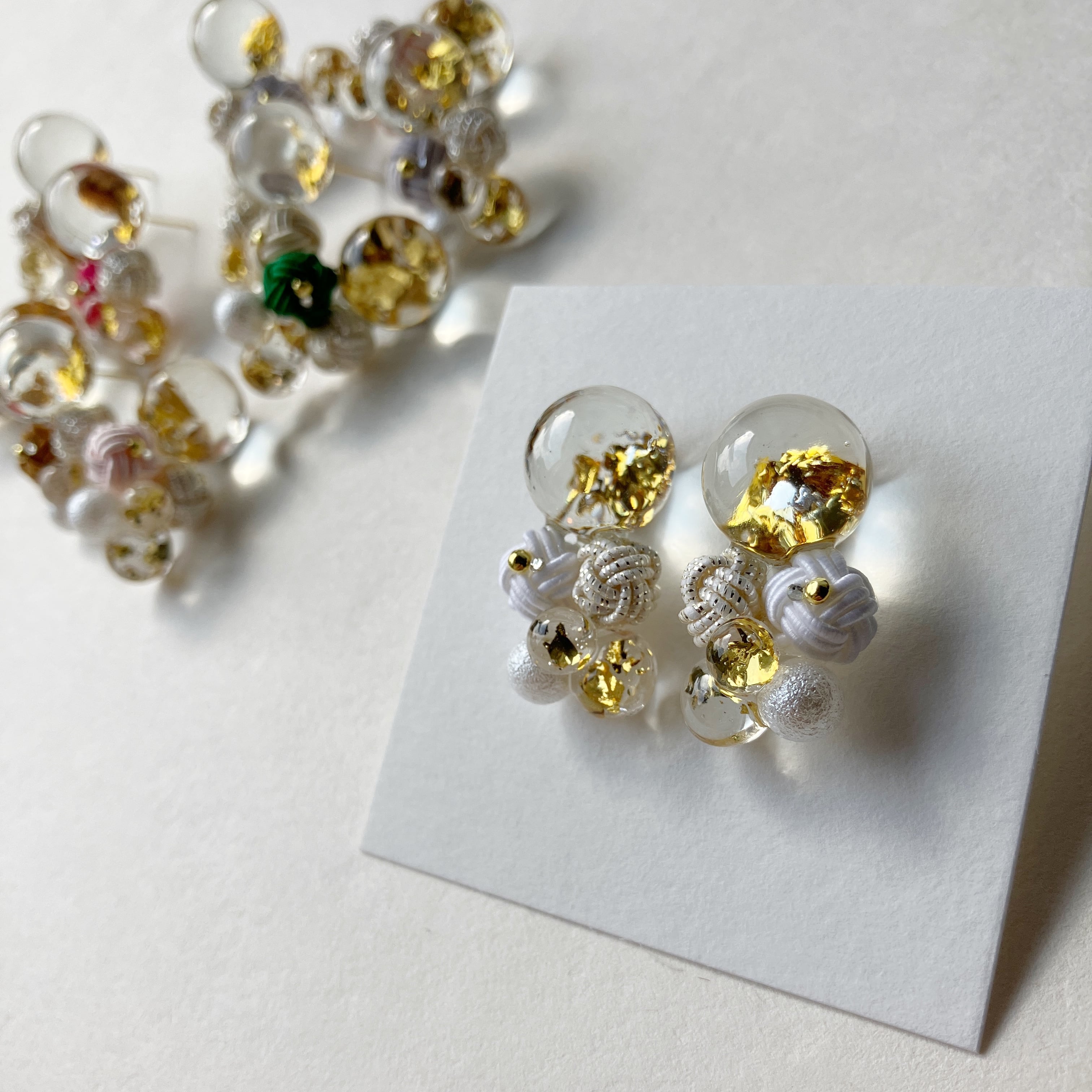 レジン珠の中に純金箔を使用しております。